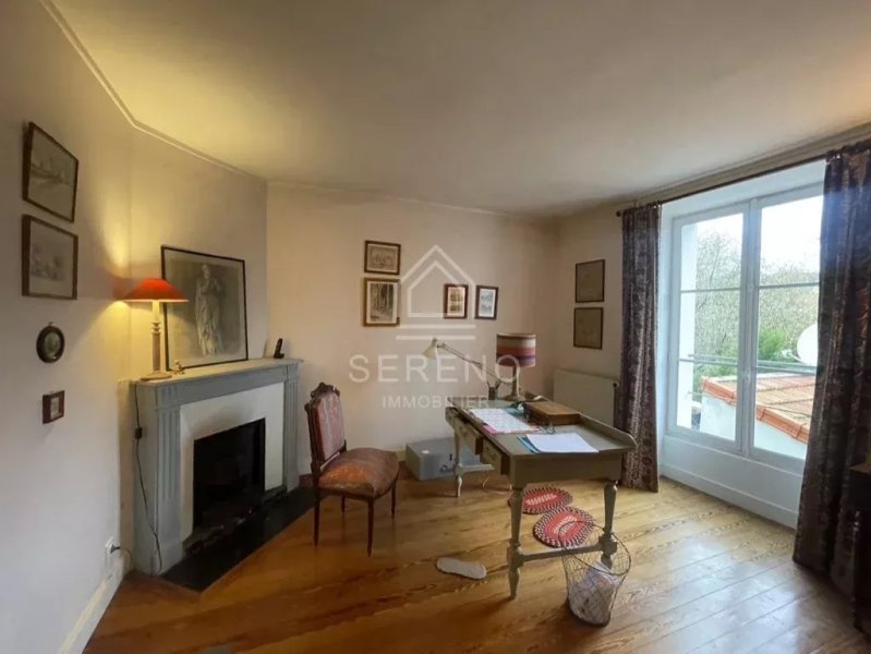 Au rez-de-chaussée, entrée desservant un lumineux salon-séjour traversant avec cheminée, une cuisine équipée, salle à manger, une chambre d’appoint, une salle d'eau et un WC indépendant, tomettes ancienne bon état, petit batiment latéral sur cour avec un bureau boudoir, palier avec WC et salle d’eau, sur couloir traversant desservant le jardin.