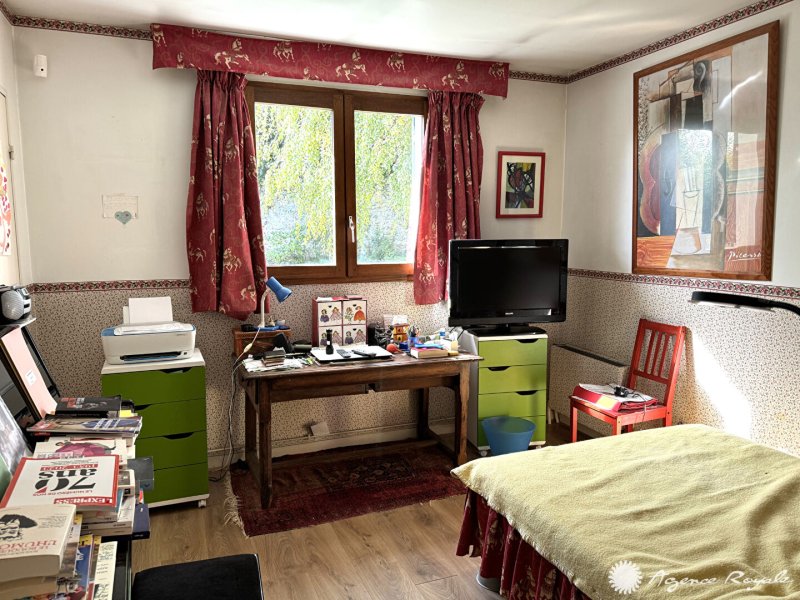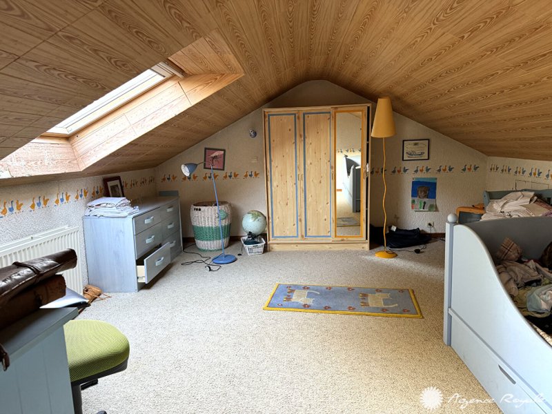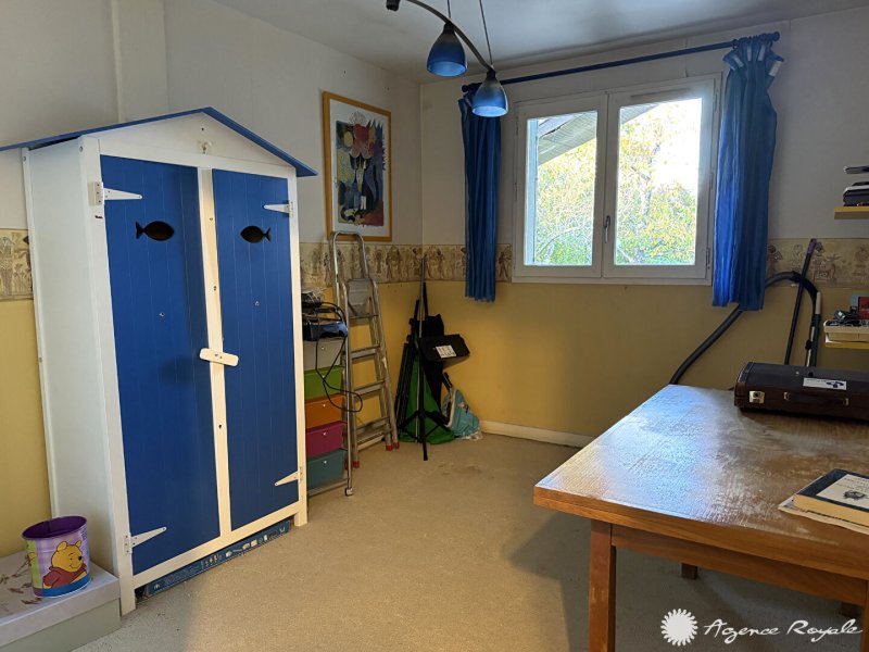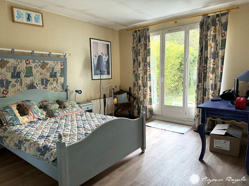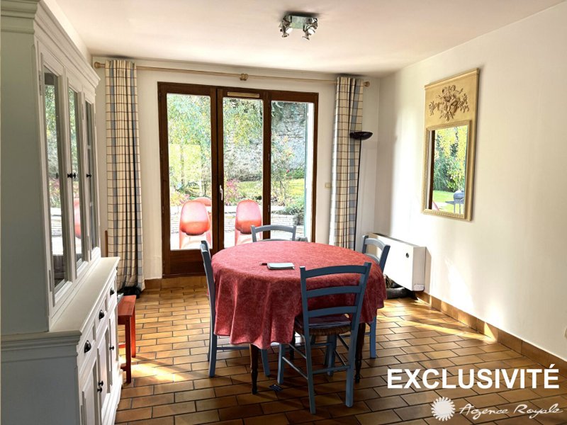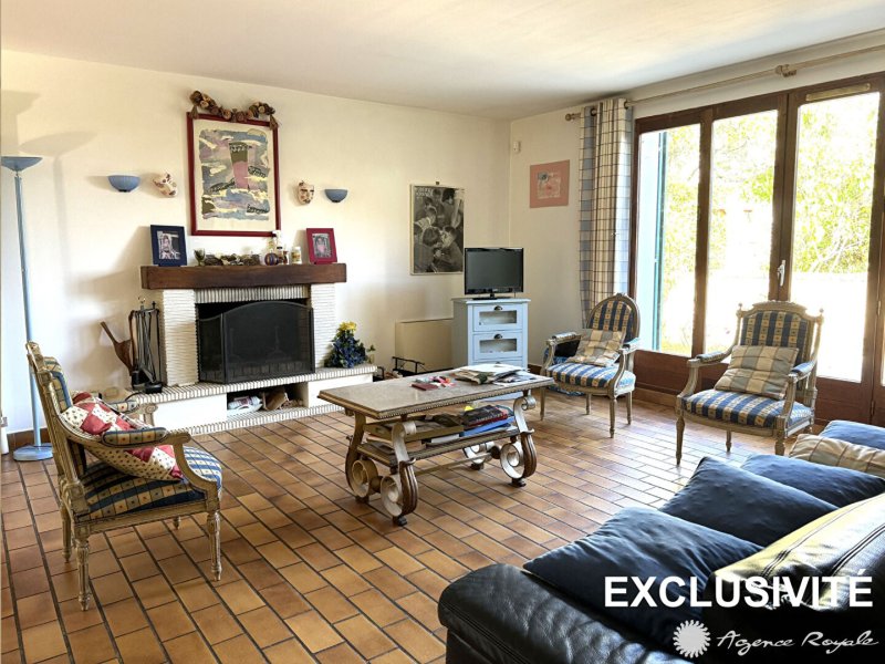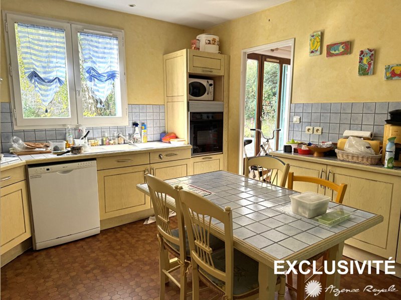 Maison de 175m² sur 820m² de Terrain : Entrée, Séjour traversant avec cheminée de 40m² sur Terrasse et Jardin, Cuisine de 12m² (possibilité de cuisine américaine), 5 Chambres dont 3 de plain-pied, 2 Salles de bains, Salle de douche, Mezzanine, Buanderie, GARAGE double. Très beau volume de plain-pied, très calme, proche écoles.
