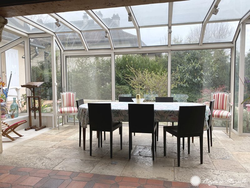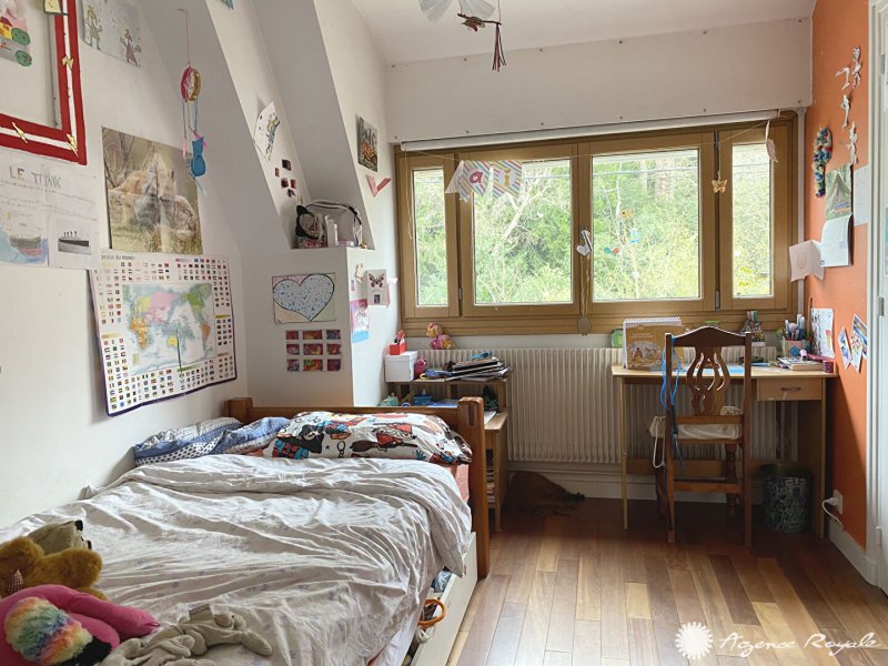 LE PECQ Grandchamp Au calme, dans le domaine privé et sécurisé de Grandchamp, Grande Maison Familiale de 287m² habitables (380m² utiles) sur 698m² de terrain : Entrée, Réception de 68 m² avec cheminée et véranda donnant sur Terrasse Ouest, Cuisine aménagée, 8 Chambres (possibilité d'en réunir) dont une au rez-de-chaussée avec sa Salle de douche et dressing, ainsi qu'une grande Suite Parentale à l'étage de 25m² avec Coin Bureau, Dressing et Salle de douche, Salle de bains avec douche, Salle d'eau, Salle de Jeux. Cave, Cave à vin, Buanderie. Garage. Jardin sans vis à vis. Bus pour SAINT GERMAIN EN LAYE ou GARE SCNCF de MARLY-LE-ROI. AGENCE ROYALE - Elsa KROULEFF 06 11 99 10 31, à vos côtés pour tous vos projets immobiliers depuis 1988.
