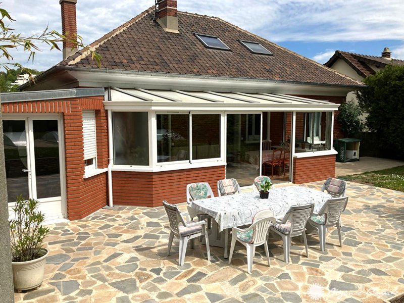 LE PECQ Limite SAINT GERMAIN EN LAYE, Bus RER et Lycées à proximité Sur très beau terrain de 980m² avec Piscine, Maison de 175m² comprenant : Entrée, Séjour SUD-OUEST avec cheminée donnant sur Véranda et Jardin, Cuisine équipée sur Véranda, 5 Chambres dont 2 de plain-pied, Bureau, Salle de Bains avec fenêtre, 2 Salles de Douche, Garage de 27m², Cave à vin et Chaufferie gaz. Possibilité de logement indépendant. Belle hauteur sous plafond. AGENCE ROYALE - Elsa KROULEFF, à vos côtés pour tous vos projets immobiliers depuis 1988.