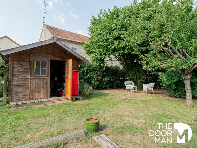 Maison ancienne située au Perray en Yvelines avec un jardin clos (terrasse orientée ouest, cabane de jardin) et des accès rapides aux commodités : écoles, boulangerie et supermarché.