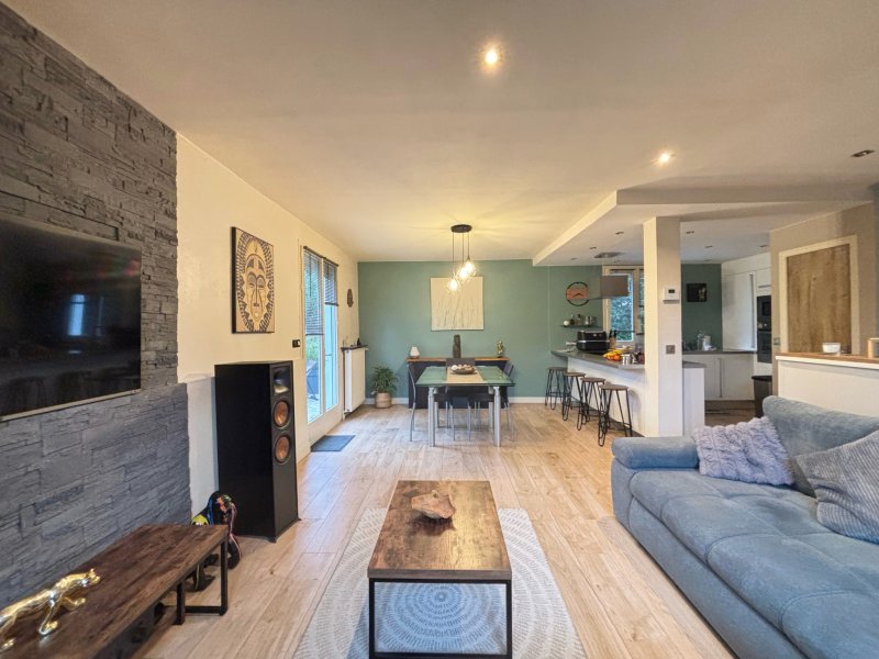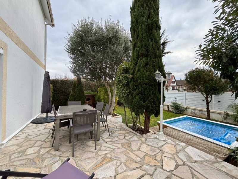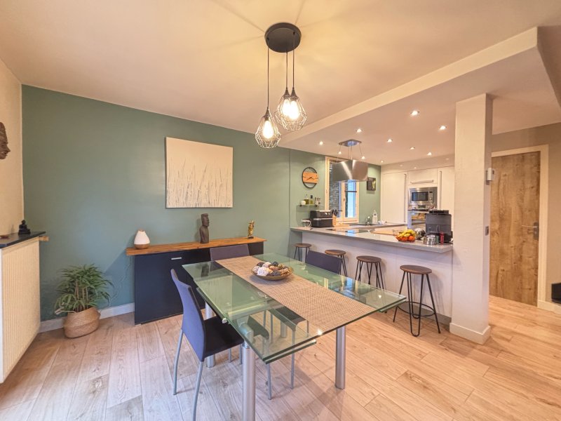 L'Étude Gindra vous propose cette charmante maison individuelle d'environ 80m2, idéalement située dans le très recherché quartier du Val Roger. Au rez-de-chaussée, vous découvrirez une entrée ouvrant sur une belle pièce de vie lumineuse de plus de 30 m2, avec cuisine ouverte entièrement équipée. Cet espace convivial donne accès à une agréable terrasse exposée Sud-Ouest. Un WC ainsi qu'un espace de rangement pouvant également servir de petit bureau complètent ce niveau. À l'étage, un palier dessert trois chambres avec placards intégrés, ainsi qu'une salle d'eau moderne avec WC. Le sous-sol comprend une chaufferie, une buanderie et une grande pièce pouvant être aménagée en atelier ou espace de loisirs. À l'extérieur, vous bénéficierez d'un carport permettant de stationner plusieurs véhicules, ainsi que d'un joli jardin sans vis-à-vis, parfaitement exposé, avec une petite piscine pour profiter des beaux jours. Vous serez séduits par son emplacement privilégié et son excellent état général. Une visite s'impose pour découvrir ce bien ! Prix affiché, honoraires inclus à la charge du vendeur.