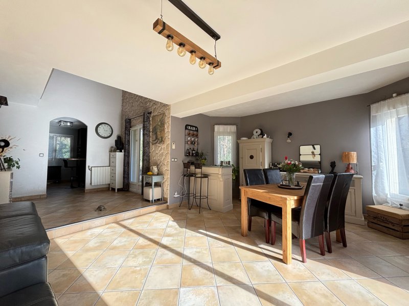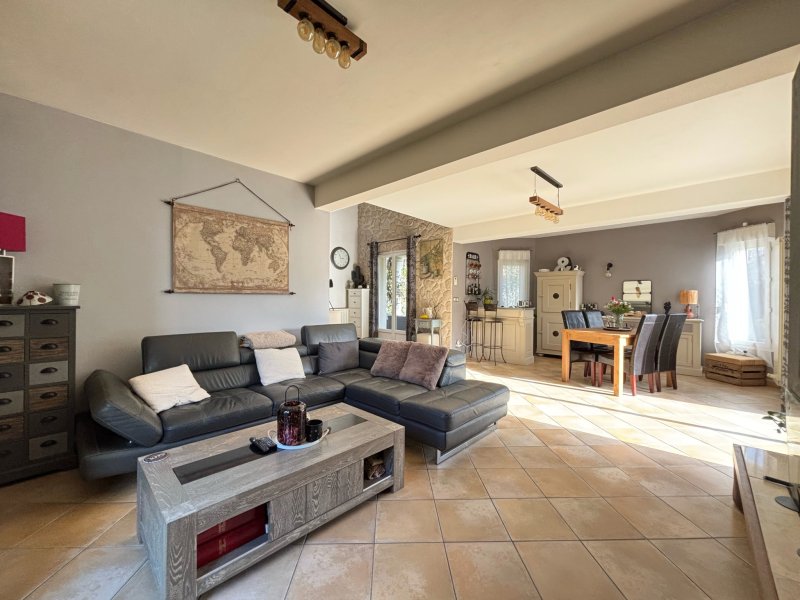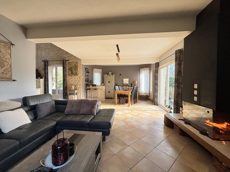 L'Étude Gindra vous propose cette charmante maison édifiée en 2004, située au fond d'une petite impasse dans un environnement arboré, à proximité immédiate des commodités (bus, commerces, boulangerie...). D'une superficie d'environ 151 m2, elle se compose au rez-de-chaussée d'une belle entrée avec placard, d'un spacieux salon/salle à manger avec cheminée bénéficiant d'une triple exposition (est-ouest-sud) offrant une belle luminosité et un accès direct à la terrasse exposée plein sud, équipée d'un store banne électrique. Vous trouverez également une cuisine indépendante, une chambre avec sa salle d'eau privative ainsi qu'un WC avec lave-mains. À l'étage, un agréable palier dessert trois belles chambres (17 m2, 19 m2 et 15 m2), dont une suite parentale avec salle de bains privative. Chaque chambre dispose d'un accès extérieur : deux donnent sur une belle terrasse et la troisième sur un balcon. Une salle d'eau et un WC indépendant complètent ce niveau. Un sous-sol total d'environ 120 m2 vient parfaire ce bien et comprend un garage, un atelier, une buanderie et une cave. Belles prestations : construction de qualité, volets roulants électriques avec domotique, isolation en laine de roche, puisard. Une visite s'impose pour découvrir ce beau bien ! Le prix affiché s'entend commission comprise à la charge des vendeurs.