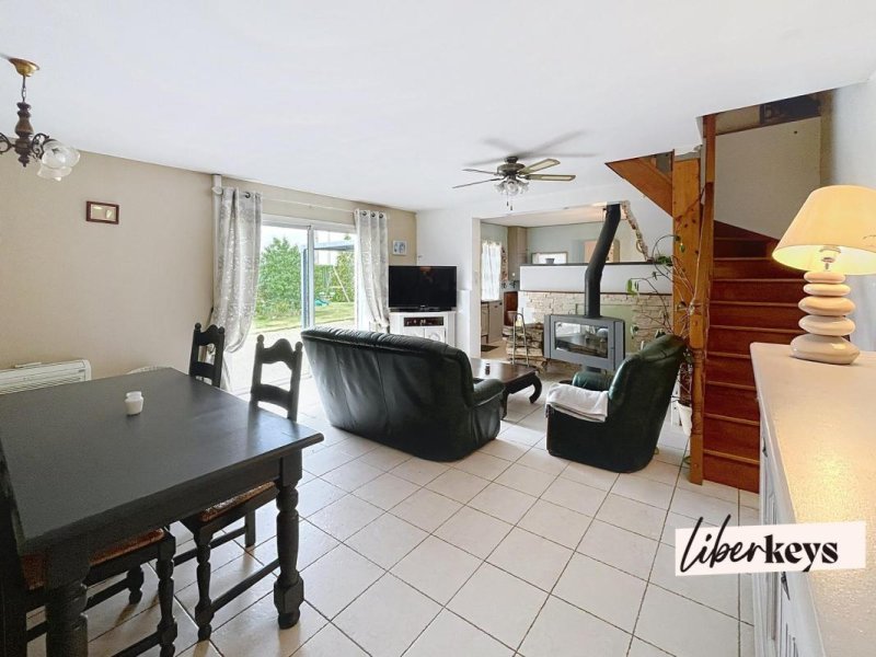Espace de vie : Un séjour de 35 m² avec poêle à bois, ouvert sur une vaste cuisine conviviale de 20 m². Un ensemble de 55 m² tourné vers le partage.