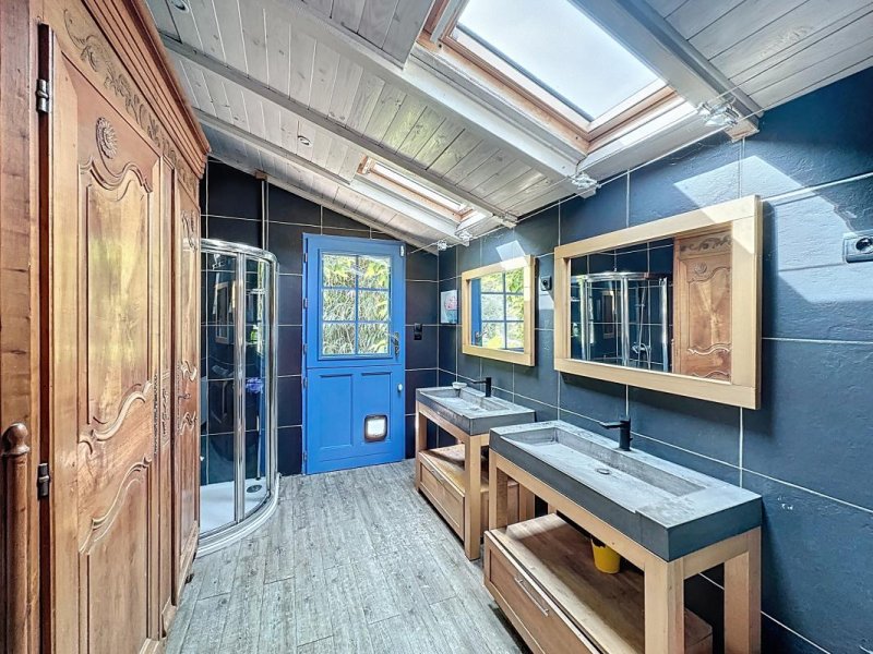 Elle se compose d'une maison principale d'environ 146 m2 comprenant un vaste séjour avec cheminée, 2 chambres, un bureau, une mezzanine, une suite parentale avec salle d'eau, wc et dressing, une salle d'eau séparée, un wc, une cuisine séparée, une buanderie.