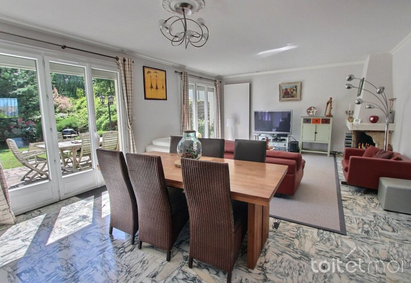 Les agences TOIT ET MOI vous présentent cette maison familiale située dans un quartier résidentiel. Vous serez séduits par son agencement fonctionnel, ses volumes et sa luminosité. Elle comprend au rez-de-chaussée un hall d'entrée, un grand espace de vie avec cheminée, bien exposé, avec ses trois portes-fenêtres ouvertes sur une grande terrasse, une cuisine aménagée et équipée, deux chambres, une salle de bains. et des toilettes avec lave-mains. La salle de bains dispose d'une baignoire et d'une douche à l'italienne. La configuration initiale intégrait 3 chambres : la pose d'une simple cloison permet de revenir à cet aménagement. Les fenêtres de ce niveau sont équipées de volets roulant électriques. A l'étage, un palier dessert deux chambres dont une vaste suite parentale, et un bureau (ou chambre d'enfant). La suite parentale dispose d'une salle d'eau avec WC et d'un dressing à aménager. L'étage comprend une autre salle d'eau avec WC. Nombreux rangements. Le sous-sol comprend un garage, un espace buanderie, et un espace de stockage. Vous profiterez d'un agréable jardin, à l'abri des regards. Le terrain à l'avant de la maison permet de garer plusieurs véhicules. Antoinette LEVEQUE (EI) Agent Commercial - Numéro RSAC : 842353823 - VERSAILLES.