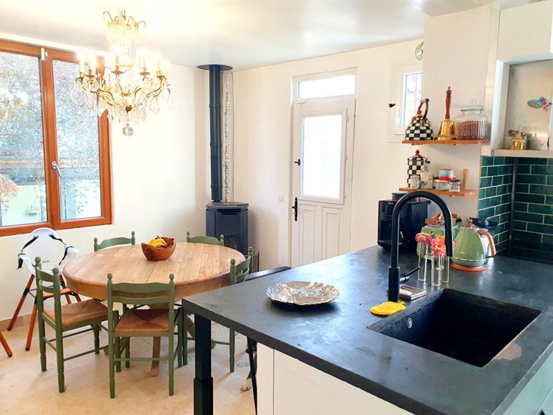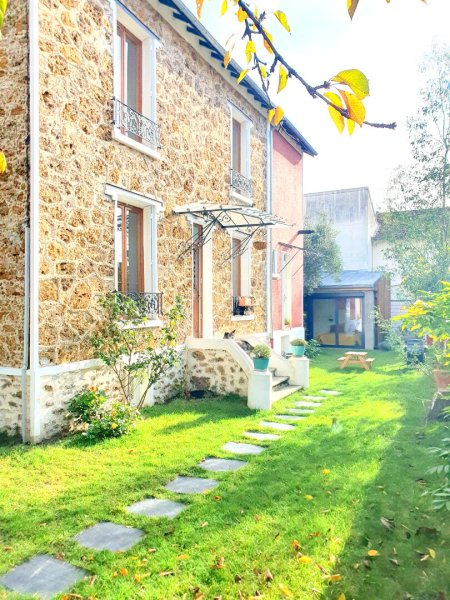 Dans un secteur recherché situé à seulement 200m des nouvelles berges aménagées du canal de l'Ourcq, maison meulière au charme incontestable offrant sur près de 80m² habitables (+ 16.5m² de dépendance + 25m² de cave aménagée) : une entrée, une cuisine entièrement aménagée et équipée ouverte sur le coin repas (pôele), et un salon avec cheminée et parquet point de Hongrie. A l'étage, un dégagement, 2 grandes chambres de 13.5m² chacune, un bureau/dressing, et une salle d'eau contemporaine avec toilettes. Mais aussi, un garage pour un véhicule automobile avec porte motorisée, une cave aménagée avec bureau, salle de bains, toilettes, et espace laverie, du double vitrage à chaque fenêtre, une remise à neuf en 2022 des sols, murs, plafonds et de l'électricité de toutes les pièces, une chaudière gaz de 2022, une toiture entièrement isolée, une dépendance entièrement isolée avec de grandes baies vitrées donnant sur le jardin, et une exposition principale Sud-Ouest particulièrement lumineuse. UNE VRAIE MEULIÈRE REFAITE À NEUF : AUCUNS TRAVAUX À PRÉVOIR. RARE ... DPE : GGG -- GES : GGG (lettres exactes à venir car les diagnostics sont en cours de réalisation )
