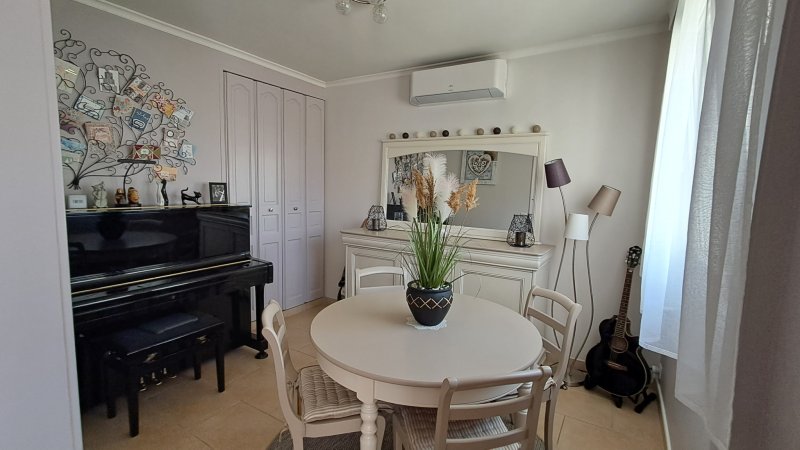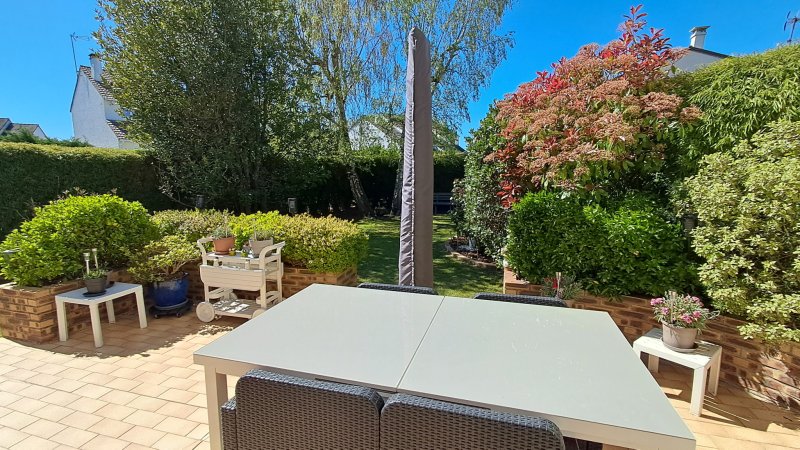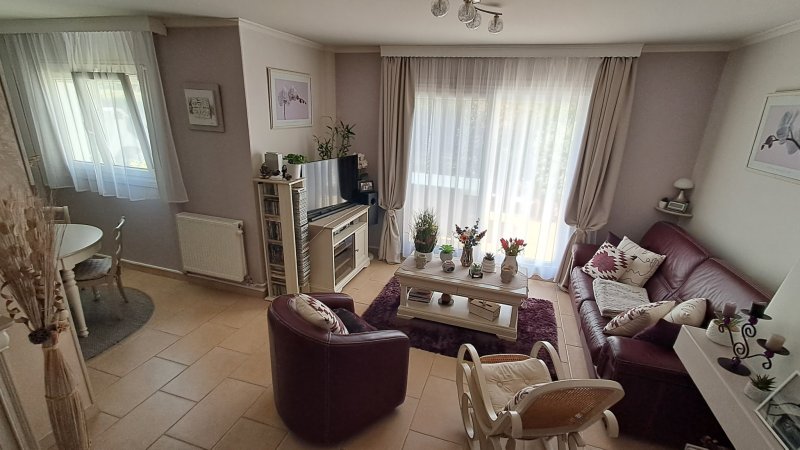 Exclusivité pour cette maison mitoyenne en décalé d'un coté, située dans une Résidence avec les écoles maternelles , primaires et crèche a 200m.Sur pres de 500m2 de terrain, très belle maison avec entrée, double séjour et cheminée, cuisine entièrement aménagée et équipée, wc indépendant, rangements. A l'étage, 3 chambres, 1 salle d'eau .Combles aménageables Garage impeccable de 15m2 Grande allée devant pour 2 voitures , terrasse a l'arrière exposée Ouest.. Charges copro peu élevées : 18 EUR par mois Très belles prestations intérieures et extérieures. Plancher béton, double vitrage PVC avec volets electriques, Chaudière de 2021, Clim réversible, fibre, alarme, etanchéité toiture faite, portail electrique. BRICOLEURS S ABSTENIR, AUCUN TRAVAUX A PREVOIR.!