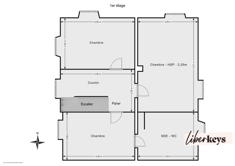 L'escalier en bois mène à l'étage, où trois chambres prennent place, dont une avec sa propre salle d'eau. L'ensemble forme un espace nuit agréable, bien séparé des pièces de vie et profitant d'un calme appréciable.