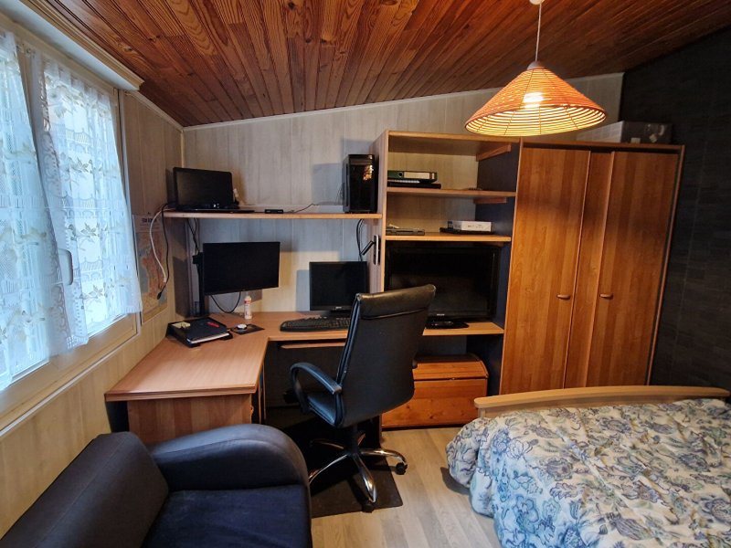 À l'étage, le palier dessert un séjour lumineux avec salle à manger, une cuisine fonctionnelle, une chambre supplémentaire, ainsi qu'une salle de bains et un WC séparé.