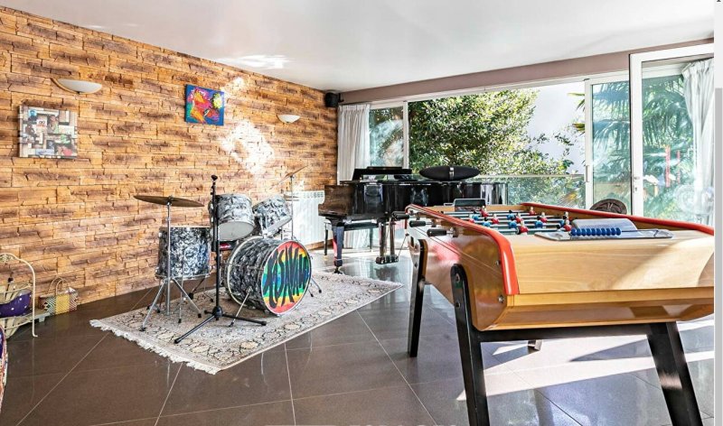 Pavillon sur un sous-sol total, de grand standing et d'exception dans un secteur très recherché proche des transports BUS ET TRAM. Ce pavillon comporte de très beaux volumes et de très grandes ouvertures laissant entrer une belle luminosité. Il comprend, une entrée, un séjour double de 40 m² env. avec une cheminée, une terrasse de 30m² exposée plein sud, une cuisine ouverte de 46 m2 permettant une grande convivialité, cinq chambres dont une suite parentale de 21m² avec son espace douche, deux salles de bains dont une avec une baignoire et une douche, deux bureaux, un chauffage central au gaz, des fenêtres avec du double vitrage et une isolation totale. Un escalier situé au premier étage mène au toit qui laisse apparaitre une belle terrasse en teck de 60 m² et une cuisine d'été qui vous permettra de passer des soirées à la belle étoile. Au sous-sol vous disposez d'un garage pour deux voitures, d'une cave et d'un atelier. Le tout sur un terrain arboré de 473m².