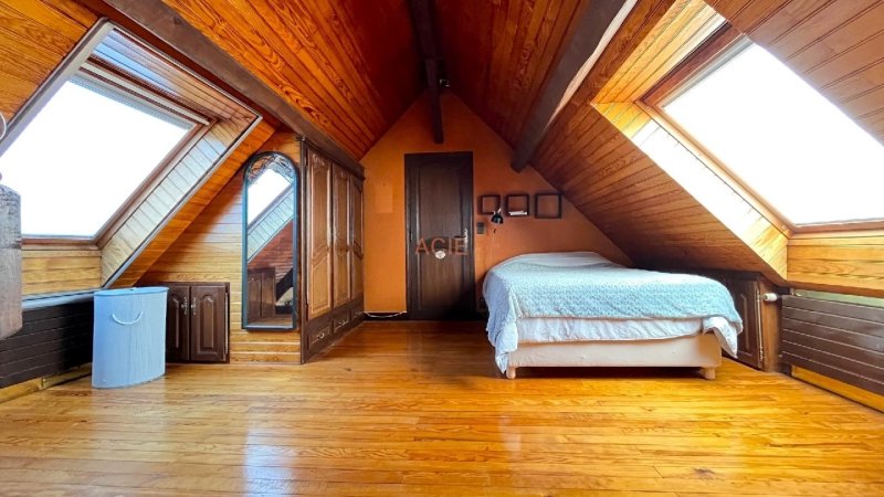 A l'étage : palier, 2 chambres, un dressing ou bureau, une salle de bains avec possibilité d'un wc.