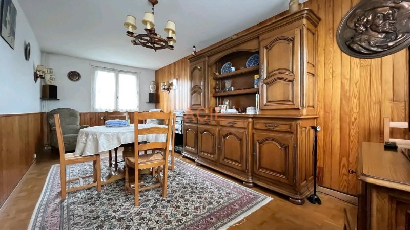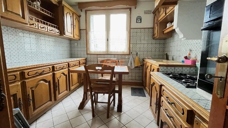 A l'étage: palier, wc, salon, cuisine fermée et équipée.