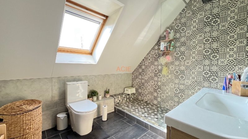A l'étage : grand palier, 2 grandes chambres, salle d'eau.