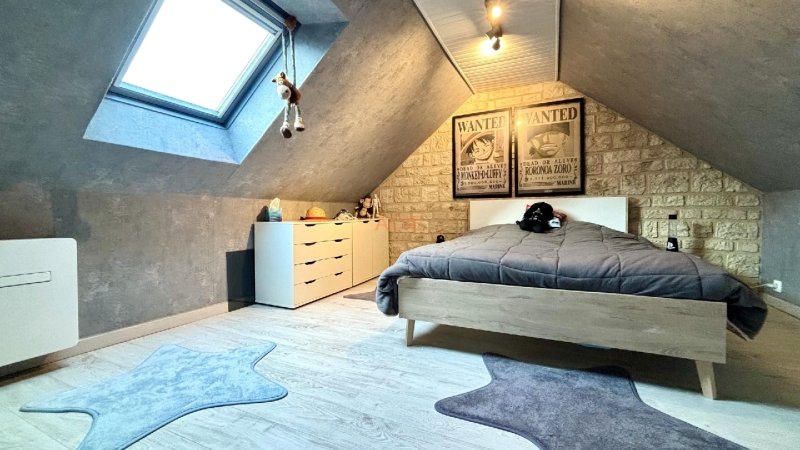 A l'étage : palier, 2 grandes chambres et un bureau.
