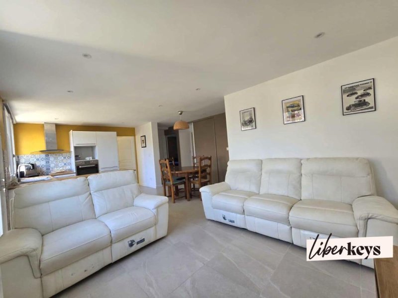 o 1 Belle pièce de vie traversante et lumineuse de 80 m2 avec cuisine américaine équipée donnant accès sur la terrasse et sur le jardin.