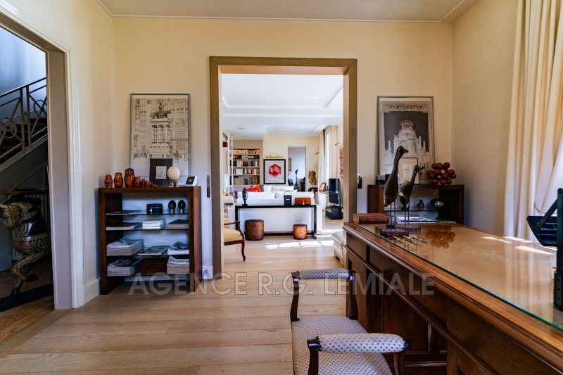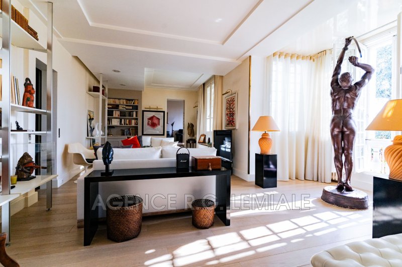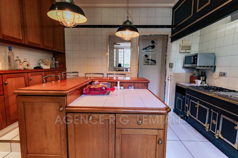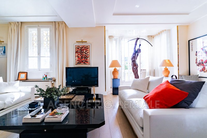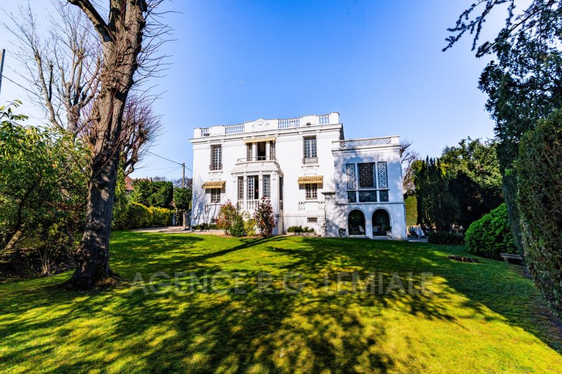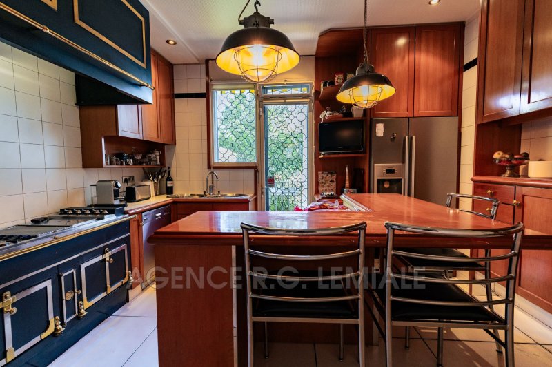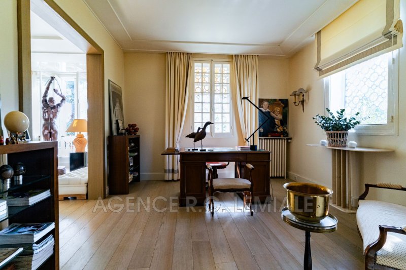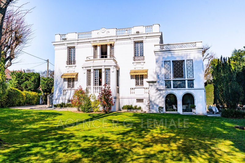 AGENCE RG LEMIALE : Très belle Propriété Art Déco ? Parc du château de Maisons-Laffitte Nichée dans la verdure, cette belle maison de (222m²+ 56m²) avec un magnifique jardin arboré et des prestations haut de gamme. Rez-de-chaussée : un hall d'entrée, un grand bureau, un séjour lumineux avec oriel, un salon, une grande salle à manger, une cuisine dinatoire entièrement équipée avec accès direct sur le jardin, une suite parentale avec salle de bains et dressing, toilettes indépendants. À l'étage : trois chambres dont une suite avec salle de douche et dressing, une salle de bains avec toilettes. Rez-de-jardin : un salon bar, un grand jardin d'hiver avec jacuzzi et cheminée, ouvrant sur une belle terrasse, une buanderie, une cave à vin et un garage pour une voiture.