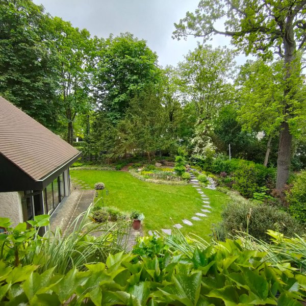 Le jardin paysagé invite à la détente, avec son abri de jardin et son environnement d'un calme absolu