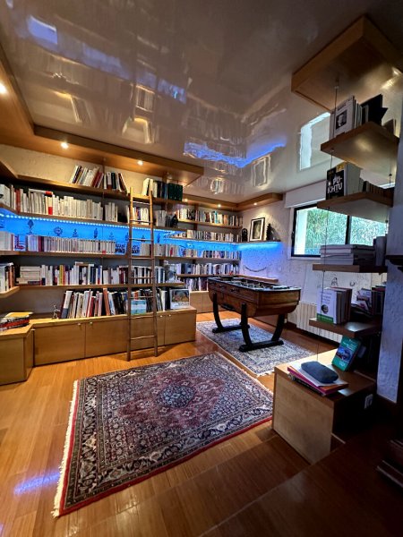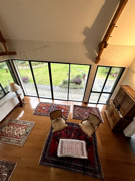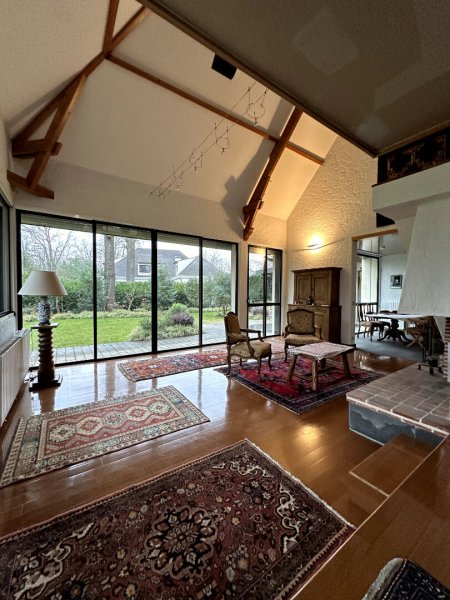 Dès l'entrée le charme opère avec un double séjour cathédrale agrémenté d'une cheminée et d'une bibliothèque