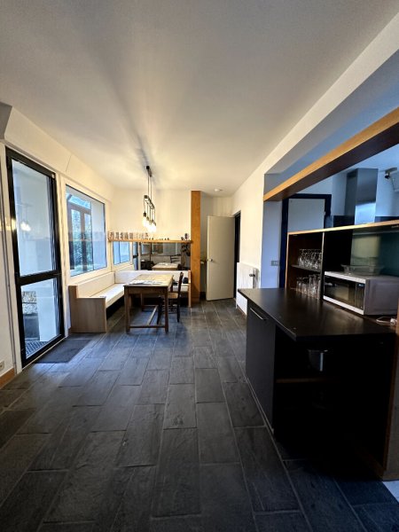 La salle à manger attenante et la cuisine équipée avec coin repas complètent cet espace convivial