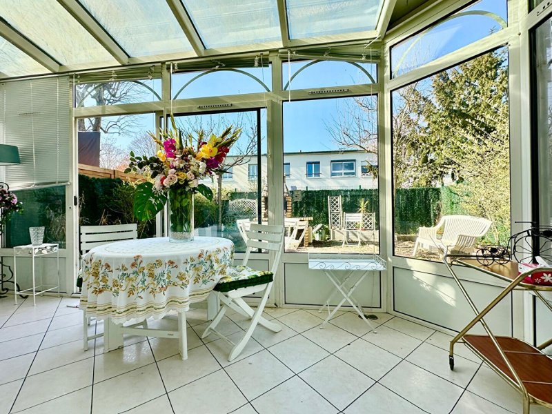 un séjour convivial idéal pour les moments en famille, une cuisine fonctionnelle ainsi qu'une agréable véranda, véritable pièce de vie supplémentaire ouverte sur le jardin.