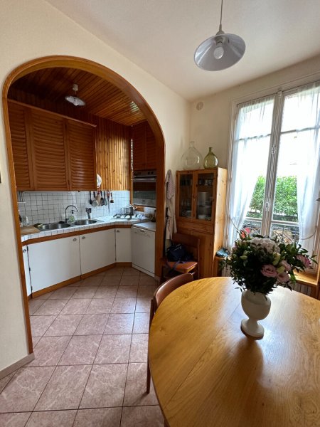 ** IMMO CONCEPT ** Exclusivité -À quelques minutes du centre-ville, cette maison meulière a été entretenue au fil des années par un artisan, dans un esprit de constance et d'attention portée aux matériaux. Elle développe 116m², auxquels s'ajoutent un sous-sol, un atelier-garage et une cour pavée, offrant un ensemble évolutif selon les usages. L'accès se fait par une terrasse couverte, qui marque l'entrée et prolonge l'espace vers l'extérieur. Au rez-de-chaussée, l'entrée dessert une cuisine avec espace repas, puis un séjour lumineux, agrémenté d'une cheminée en marbre. L'escalier en bois d'origine relie les différents niveaux. Le premier étage accueille deux chambres ainsi qu'une salle de bains. Le deuxième étage mansardé propose une troisième chambre, un bureau et une salle d'eau, dans une atmosphère simple sous les toits. La maison nécessite un rafraîchissement et une mise au goût du jour, permettant d'envisager une modernisation respectueuse de son caractère. Le sous-sol comprend plusieurs espaces : salle de jeux, buanderie, atelier et cave à vin, adaptables à différents projets. À l'extérieur, l'atelier-garage et la cour pavée peuvent être conservés dans leur configuration actuelle, ou repensés afin de créer un espace complémentaire, éventuellement plus ouvert et végétalisé, selon les besoins et les envies. Un emplacement pour un véhicule complète l'ensemble.