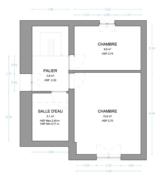 Le deuxième étage propose deux chambres supplémentaires et un cabinet de toilettes, offrant de belles possibilités d'aménagement.