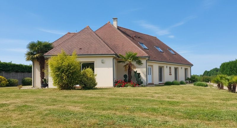 Syndixia Immobilier vous propose cette maison moderne avec grands volumes .Cadre de vie privilégié à 1h20 de Paris Située au coeur d'un village dynamique et recherché, cette belle propriété moderne vous séduira par son excellent état, ses volumes généreux et son environnement sans vis-à-vis, sur un terrain de 1 700 m2. Dès l'entrée, vous découvrirez un vaste espace de vie d'environ 70 m2, lumineux grâce à sa triple exposition, grande cuisine aménagée et équipée avec cellier, ainsi qu'un bureau. Trois chambres, dont une suite parentale, ainsi qu'une salle de bain et toilettes.. À l'étage, vous trouverez deux grandes chambres, ainsi qu'une troisième chambre avec sa propre salle d'eau, complétées par une salle de bain et des toilettes. À l'extérieur, plusieurs terrasses vous permettront de profiter pleinement d'un jardin sans vis-à-vis, dans un cadre calme et agréable. Un double garage, des fenêtres en PVC double vitrage avec volets roulants électriques et un portail électrique complètent ce bien de qualité, construit avec soin. La maison bénéficie d'un emplacement idéal dans un village offrant toutes les commodités : centre de santé, épicerie, boulangerie,pharmacie, fleuriste... ainsi qu'une école publique de la maternelle au CM2 avec ramassage scolaire. Un bien rare alliant confort moderne, vie de village et proximité de Paris. À visiter sans tarder ! DPE B GES A Montant estimé des dépenses annuelles d'énergie pour un usage standard entre 2020 EUR et 2780 EUR Mandat 181