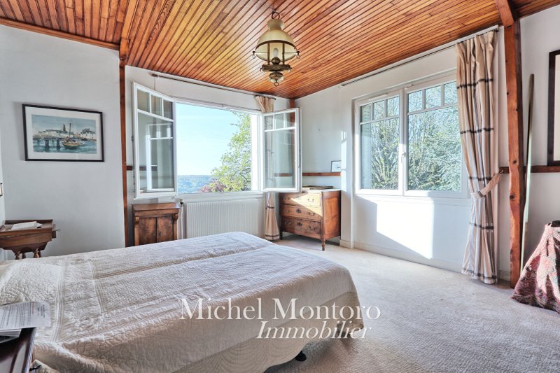 À l'étage, un palier dessert une chambre avec point d'eau, une salle de bains, un WC indépendant, une grande chambre avec vue sur le jardin, une troisième chambre, un bureau (ou dressing), ainsi qu'une suite parentale avec espace salle de douche.