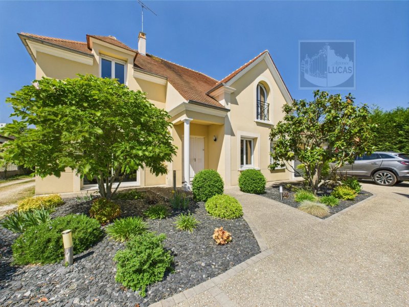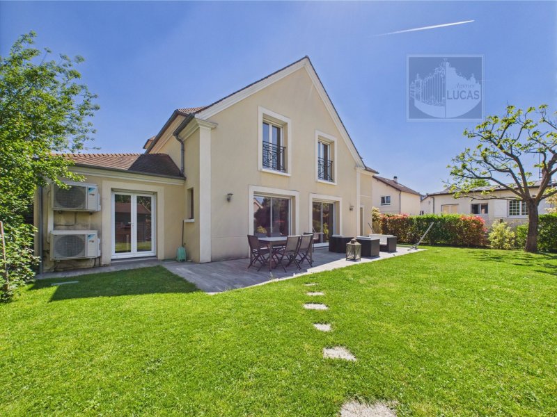 Dans un secteur calme à 15 min du RER, belle maison moderne, lumineuse et en excellent état proposant des prestations haut de gamme, édifiée sur 665 m² de terrain. Composée d'un rez-de-jardin : entrée, salon de 50 m² donnant de plain pied sur le jardin, cuisine ouverte sur le salon, chambre avec dressing et salle d'eau, toilettes. A l'étage : grande mezzanine distribuant 4 chambres, salle de bains avec douche et baignoire, toilettes. Garage et stationnements extérieurs.