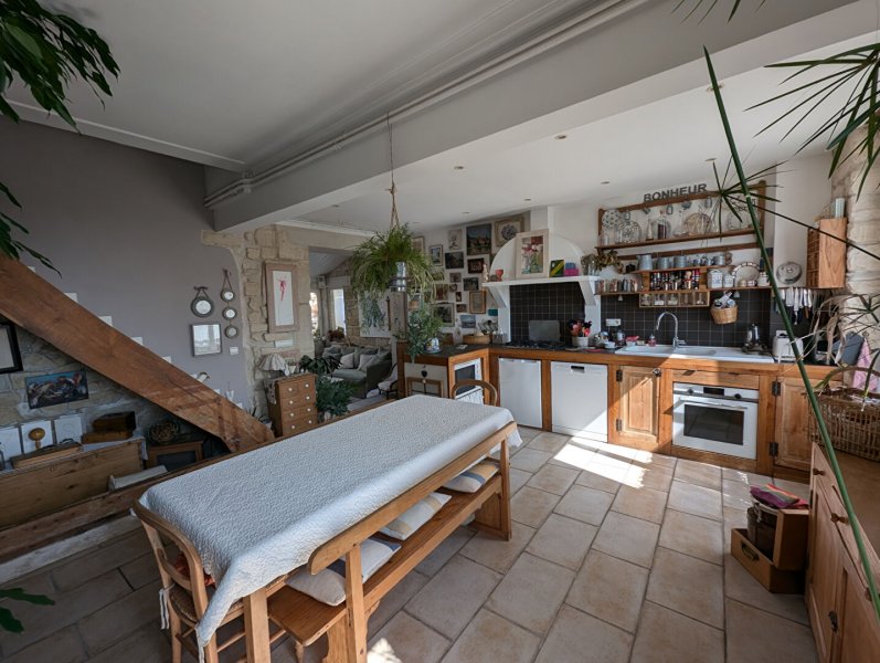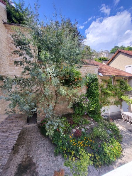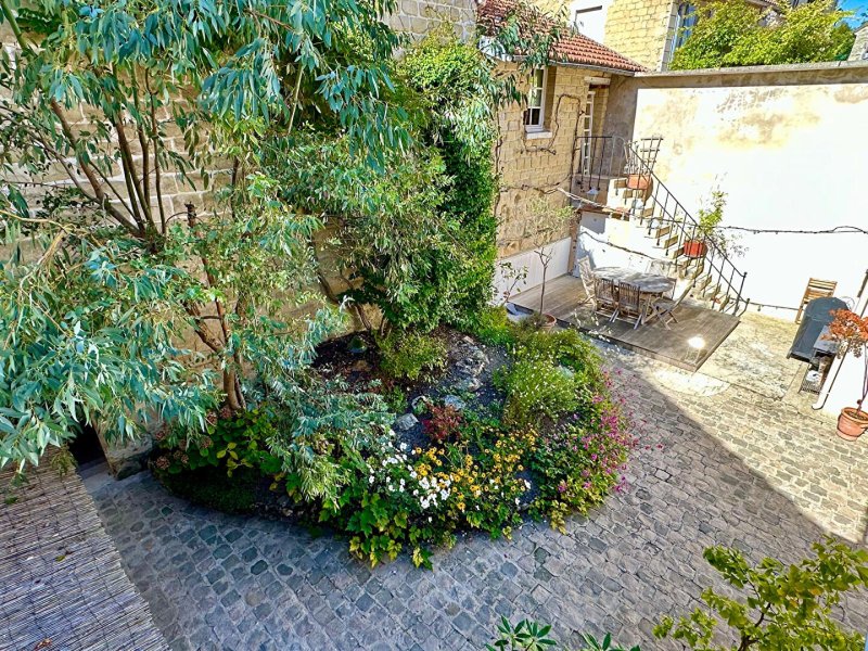 ** IMMO-CONCEPT ** À proximité immédiate des commerces et d'une école maternelle et primaire cette maison de ville pleine de charme s'ouvre sur une agréable cour arborée agrémentée d'espaces fleuris et d'un coin terrasse propice à la détente Au rez-de-chaussée vous découvrirez une cuisine ouverte sur la salle à manger une véranda-séjour donnant directement sur la cour paysagée ainsi qu'une buanderie avec WC À l'étage deux chambres dont une avec accès à une terrasse de 10 m² une salle de bains avec douche et WC ainsi qu'un dressing complètent cet espace Le dernier étage abrite une chambre avec mezzanine un dressing et une salle d'eau avec WC Enfin, la cour offre également un petit atelier et un garage parfaits pour vos besoins de rangement et de bricolage promenade le long de la plaine du MESNIL-LE-ROI Olivier MICHEL (EI) Agent Commercial - Numéro RSAC : - .