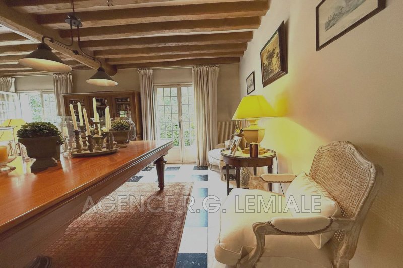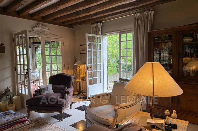 AGENCE RG LEMIALE : Belle maison de style anglo-normand avec colombages, nichée dans la verdure, beau jardin arboré sans vis-à-vis et vue sur la forêt, accès à pied à la terrasse de Saint-Germain en Laye, calme, très belle construction par les compagnons de France avec des matériaux de qualité, grande réception, belles chambres dont une au rez-de-chaussée (RARE). Au rez-de-chaussée : entrée, séjour (40m² env.) avec poutres apparentes, grande cheminée, cuisine équipée avec coin repas(18m²), WC, chambre 13m² env, salle de bains, terrasse. Au premier étage : deux grandes chambres dont une suite avec salle de bains, un WC avec lavabo. Au sous-sol : une chaufferie, un coin cave à vin, un garage pour une voiture, buanderie. Possibilité d'agrandissement de +20% et/ou division de terrain.