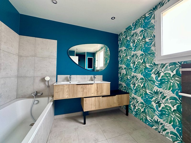 Implantée sur un terrain arboré de 894 m² la maison s'ouvre sur une belle terrasse exposée ouest