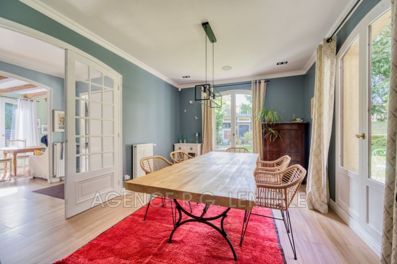 Le Mesnil-le-Roi proche Maisons-Laffitte : Dans un cadre exceptionnel de verdure sans vis-à-vis proche de la foret, découvrez cette magnifique propriété familiale avec un très beau terrain arboré, entièrement rénovée avec de très belles prestations, alliant charme et modernité. Au rez-de-chaussée : une grande entrée, un WC avec lavabo, une cuisine dînatoire aménagée et équipée, un vaste séjour double avec cheminée, une salle à manger séparée, un salon/ bureau ou chambre. À l'étage :une suite parentale avec dressing et salle de douche avec WC, 4 chambres avec rangements, une salle de bains avec WC, une salle de douche avec WC, Jardin clos avec piscine et terrain de pétanque. Très belle dépendance ancienne de caractère (environ 80m²) actuellement salle de sport et espace de stockage, possibilité d'aménager l'étage.