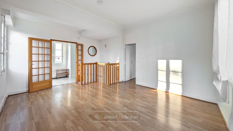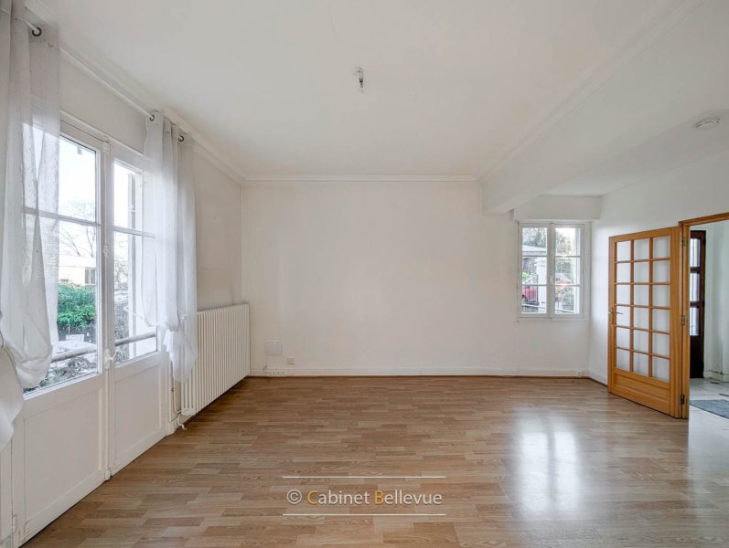 Située entre la gare de Meudon (ligne N) et la station Meudon-sur-Seine (T2), au sein d'une petite impasse privée, maison individuelle non mitoyenne de type R+1 d'une surface de 107 m2. Elle se compose : Au rez-de-chaussée : une entrée, un séjour, une cuisine indépendante, deux chambres ainsi qu'une salle de bains avec WC. En rez-de-jardin : deux chambres supplémentaires, une salle d'eau, un WC indépendant, un dressing, une buanderie et un garage. Un jardin d'environ 200 m2 entoure la maison.