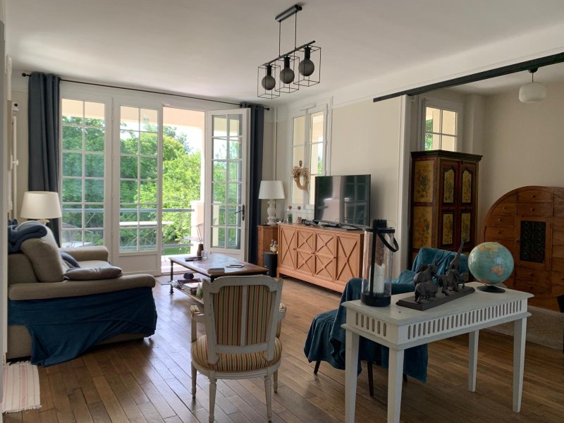 Dans le domaine privé de l'ILE BELLE, à deux pas du centre ville commerçant de MEULAN EN YVELINES, avec un accès rapide à l'autoroute A13 et A14 et à 35 minutes de la Gare SAINT LAZARE, l'AGENCE SAINT NICOLAS DE MEULAN EN YVELINES vous présente cette villa Anglo-Normande, une des premières construites dans les années 1930, qui a fait l' objet d'une restauration respectueuse en 2018 . Au rez de chaussée, l'entrée ouvre sur une triple reception traversante agrémentée d'un poële à bois et prolongée d'une terrasse couverte de 25 m2 orientée SUD et OUEST. Les amateurs de belle hauteur sous plafond et de parquets anciens apprécieront. La cuisine fonctionnelle et bien équipée est séparée de la salle à manger par une verrière. Un vestiaire buanderie et des WC complètent cet espace de réception de 56 m2, propice aux réunions en famille ou entre amis. Un large escalier mène à l'étage qui accueille deux grandes chambres, dont l'une de 18 m2 facilement transformable en suite, une salle d'eau et une suite parentale composée d'une chambre de 14 m2, d'un dressing aménagé et d'une salle de bains avec douche et baignoire vintage. Sous combles isolés et chauffés, accessible par un escalier rétractable, un espace d'environ 40 m2 CARREZ fait office de chambre ou de salle de jeux. Le sous sol total d'une superficie de 70 m2 abrite un grand garage, une buanderie chauffée, un atelier lumineux, ainsi que cave, cellier et chaufferie. Le jardin paysager plat de 1732 m2 est agréablement paysagé. La maison se présente en parfait état d'entretien depuis sa rénovation en 2018 : Toiture, isolation, ouvrants, ravalement, chaudière, électricité et plomberie : il vous suffira de vous installer. Bref, c'est la maison de famille idéale, à 10 minutes des Ecoles Publiques et de MERCIER-SAINT PAUL à MEULAN et à 15 minutes de NOTRE DAME DE VERNEUIL. Les sportifs apprécieront la proximité immédiate de la piscine, des tennis , d'un club d'aviron et les nombreuses possibilités offertes par le PARC NATUREL DU VEXIN aux passionnés de golf, d'équitation ou de randonnée. La future gare EOLE, à 15 minutes de marche, vous permettra de rejoindre LA DEFENSE en 15 minutes et PARIS CENTRE en 30 minutes. Un havre de paix dans le meilleur quartier de MEULAN EN YVELINES !
