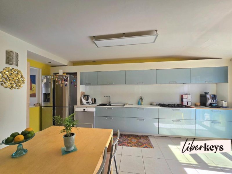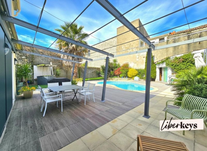Au porte de Nîmes, dans un environnement résidentiel calme, cette maison en R+1, mitoyenne par un côté, casse tous les codes!