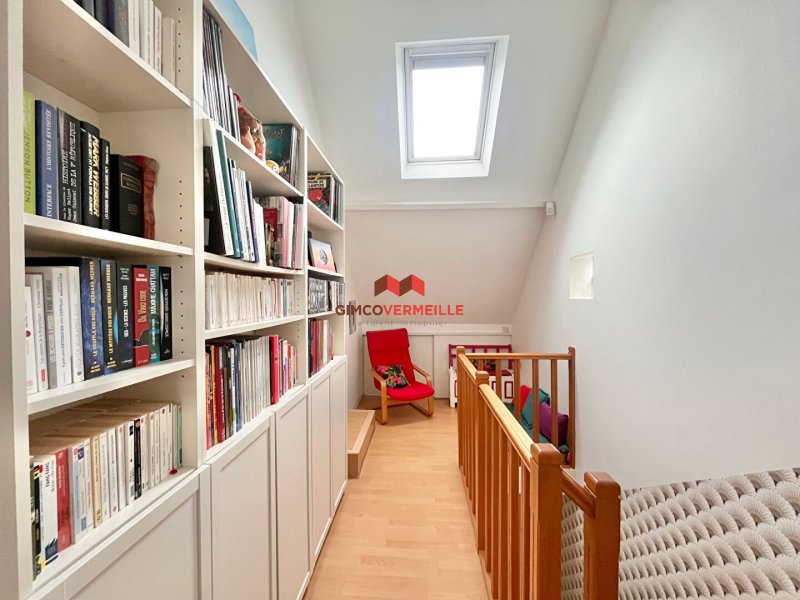 MONTESSON - L'agence Gimcovermeille vous propose de venir visiter cette charmante maison familiale, non mitoyenne, nichée au coeur d'un environnement arborée et calme. Vous disposez au rez-de-chaussée d'une entrée avec placards, d'un vaste séjour avec un accès de plein pied au jardin, d'une cuisine moderne et son espace salle à manger, d'une suite parentale avec sa salle de bains, d'une buanderie et de toilettes séparées avec lave-mains. A l'étage, un palier vous offre un coin bibliothèque ou rangement et dessert 3 chambres, une salle d'eau et des toilettes séparées. L'agencement de cette maison est parfaite pour une vie de famille. Un grand box vous permettra de garer une voiture, de ranger des vélos et d'entreposer des affaires. Vous pourrez stationner deux autres véhicules à l'extérieur sur la parcelle. Vous apprécierez de rentrer dans une maison très bien entretenue et ne nécessitant aucun travaux. Les écoles, de la crèche au collège, se situent à 5 minutes à pied et la place des Charmettes au Vésinet à seulement 15 minutes à pied.
