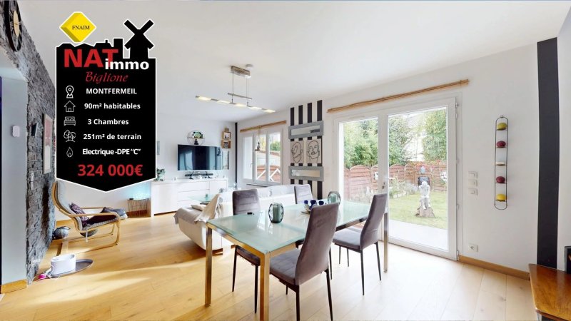 MONTFERMEIL FRANCEVILLE LES FLEURS LIMITE GAGNY. Nous vous présentons "ROMY", cette très belle maison sans travaux avec 3 chambres de 90m2 habitables + garage, sur un terrain de 251m2, DPE "C" !