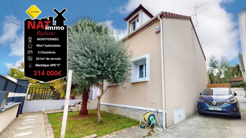 MONTFERMEIL FRANCEVILLE LES FLEURS LIMITE GAGNY. Nous vous présentons "ROMY", cette très belle maison sans travaux avec 3 chambres de 90m2 habitables + garage, sur un terrain de 251m2, DPE "C" !