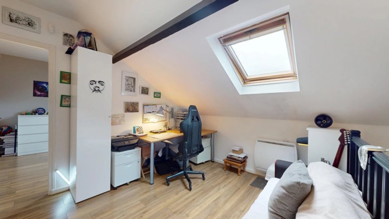 À l’étage : Le grand palier / bureau de 10m2 dessert trois belles chambres avec des espaces de rangement, dont l’une dispose d’un espace dressing ! Et vous bénéficiez d'un wc indépendant !