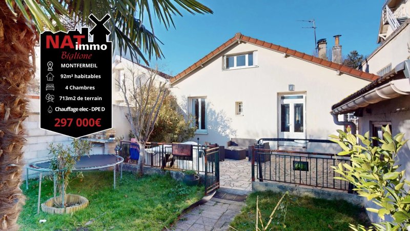 Montfermeil – Secteur des 7 Îles – MAISON DE PLAIN-PIED RARE SUR LE SECTEUR