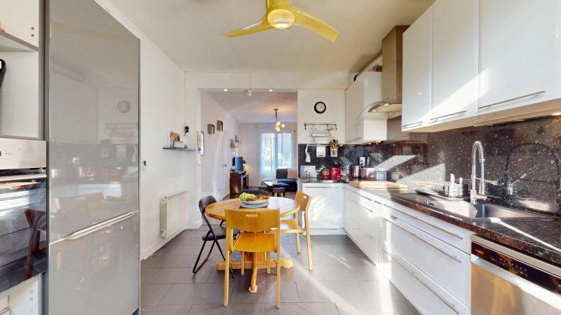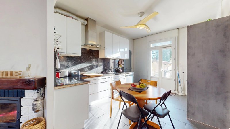 Un grand couloir central dessert un séjour chaleureux avec cheminée, une cuisine lumineuse donnant directement sur le jardin et sur une magnifique terrasse plein sud de 60 m² !
