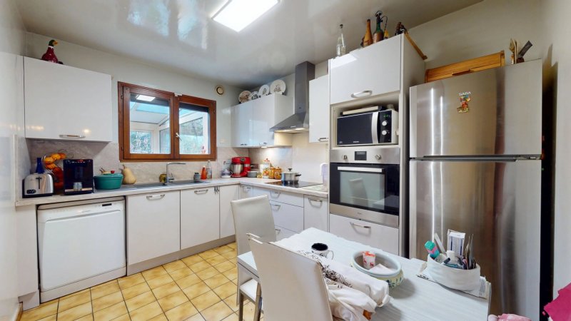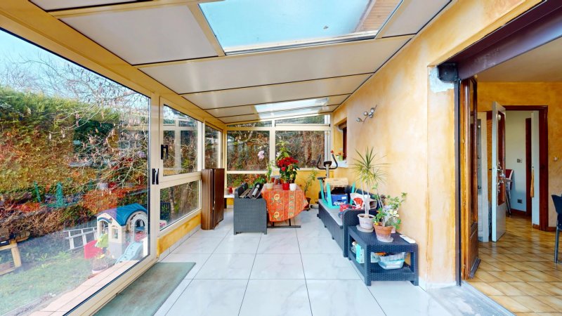 Au rez-de-jardin, une belle entrée dessert un salon lumineux de 30 m² avec cheminée insert, ouvert sur une véranda habitable toute l’année de 19 m², réalisée en 2016. Véritable puits de lumière, exposée plein sud, cette véranda constitue un espace de vie supplémentaire particulièrement agréable, offrant un ensoleillement optimal en toute saison.