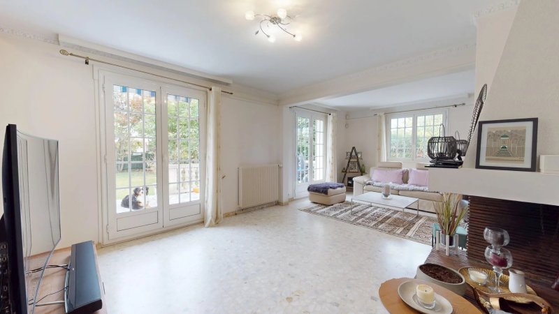 • Salon-salle à manger lumineux de 40 m² avec accès direct au jardin exposé SUD