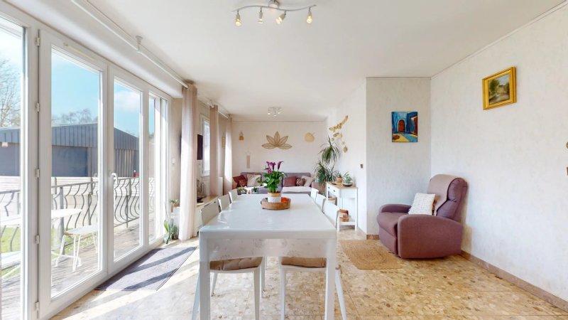 Édifiée sur un beau terrain arboré de 647 m², cette maison totalement indépendante offre 120 m² habitables répartis sur deux niveaux principaux, avec un sous-sol total.