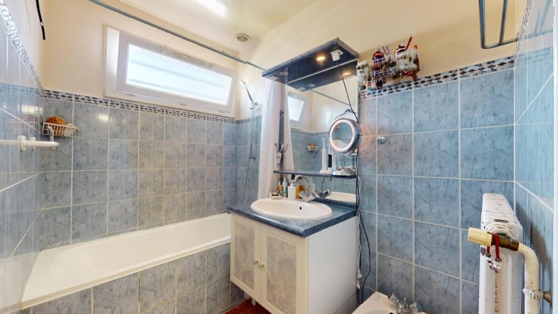 À l’étage, le palier dessert trois belles chambres, une chambre d’enfant ou bureau, ainsi qu’une seconde salle de bains avec WC, idéale pour la vie de famille.