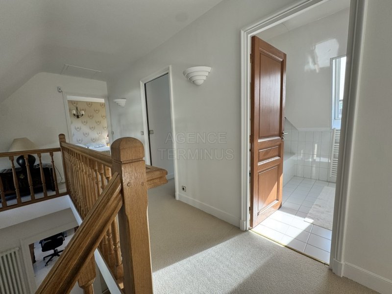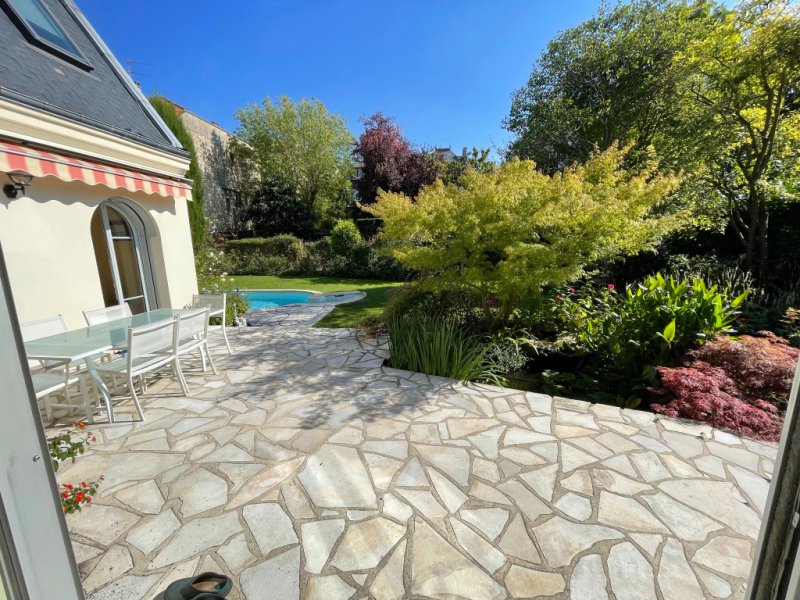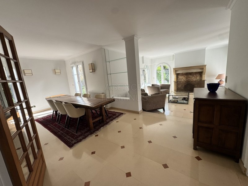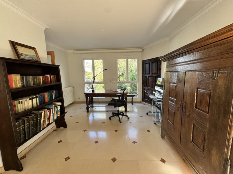 BAS MONTMORENCY, à 7 minutes à pied de la gare d'Enghien, maison d'architecte offrant: entrée, grande cuisine avec espace repas, triple réception, chambre d'amis, salle d'eau, wc, buanderie. Au premier étage trois chambres, deux dressings, salle de bains, wc. Grand sous-sol total avec garage double. Magnifique jardin paysager avec piscine, terrasse et bassin. Environnement calme pas de vis-à-vis.