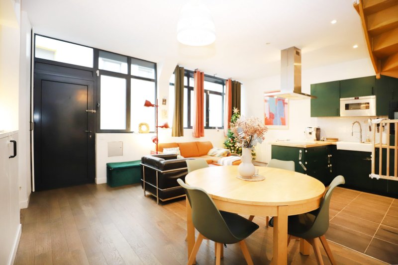 A Montreuil, centre ville, à 5 minutes à pied du métro Marie de Montreuil (ligne 9), proche du parc des Beaumonts et du quartier Solidarité-Carnot. Nous vous proposons une maison de ville en copropriété de quatre pièces en triplex de 66.98 m² Carrez et 84.45 m² au sol. Elle se compose au rez-de-chaussée : D'une entrée donnant sur l'espace de vie avec sa cuisine américaine toute équipée. Au premier étage : De deux chambres avec de nombreux rangements, d'une salle de bains avec wc. Au deuxième étage : d'une chambre parentale avec son espace bureau. Un sous-sol faisant office de buanderie, garage à vélo et atelier complète ce bien. Cette maison en parfait état général avec de faibles charges est située dans une rue calme à deux pas du coeur de ville avec ses commodités (transports, écoles, commerces, squares...) et de la place Carnot avec son marché de producteurs. Honoraires inclus de 5% TTC à la charge de l'acquéreur. Prix hors honoraires 580 000 . Dans une copropriété de 6 lots. Aucune procédure n'est en cours. Classe énergie D, Classe climat B Montant estimé des dépenses annuelles d'énergie pour un usage standard : entre 1200.00 et 1670.00 sur les années 2021, 2022 et 2023 (abonnements compris). Les informations sur les risques auxquels ce bien est exposé sont disponibles sur le site Géorisques : georisques.gouv.fr.