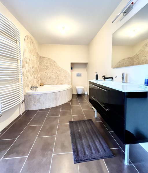 Montverdun. Bien rare à la vente ! Au centre du village, venez découvrir cette belle propriété dans un environnement calme et nature. Sur une parcelle de plus de 7 000 m2 plate et paysagée, la propriété comporte : - une magnifique maison de caractère entièrement rénovée de 245 m2 habitables. Au rez-de-chaussée un espace de plus de 80 m2 avec une pièce à vivre lumineuse donnant sur une cuisine équipée et acccès direct sur le terrain, une suite parentale de 28 m2 (salle de bains, toilettes, dressing), une salle d'eau et des toilettes séparées, une buanderie et un cellier. A l'étage, un vaste espace ouvert pour un bureau, une salle de jeux ou un coin détente, 4 chambres de 12 à 16 m2, 2 salles d'eau et 2 toilettes. Un garage de 67 m2 et une cave complètent ce bien. - deux appartements en duplex avec jardin privatif sur l'arrière du bâtiment, avec entrées totalement indépendantes. Ces 2 appartements d'environ 63 et 67 m2 en très bon état sont actuellement loués pour un montant total mensuel de 984 euros. - un troisième appartement de plus de 45 m2 est à finir de rénover (restent à faire les sols, la peinture et l'aménagement des espaces cuisine et salle d'eau), pour un futur revenu locatif supplémentaire ou une annexe de la maison par un accès direct au niveau de l'étage. Un cadre unique et de belles prestations...le coup de coeur est à portée de visite !